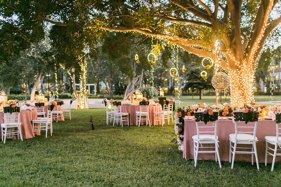 As the sun sets in the Caribbean, lighting transforms your reception from “dinner on the beach” to “luxury island soirée.”